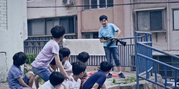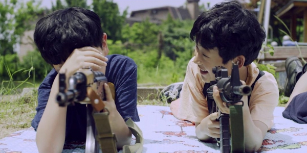 같은 중학교에 다니는 다섯 명의 소년, 대한민국 출신 두환, 탈북 가정의 령호, 미국에서 온 스미스, 일본에서 온 히로시, 중국에서 온 진핑은 동네 놀이터에서 구슬 놀이를 하며 시간을 보낸다. 땅따먹기 놀이에서 진핑이 판을 장악하던 중, 스미스가 비비탄 총을 들고 나타나 진핑의 구슬을 맞히며 놀이의 규칙은 순식간에 바뀐다. 아이들은 더 이상 구슬보다 총에 집착하게 되고, 총을 한 번이라도 쏘기 위해 스미스의 심부름을 자처하며 새로운 서열 구조가 만들어진다. 며칠 뒤 진핑이 더 크고 강력한 자동식 비비탄 총을 들고 등장하면서 힘의 중심은 이동한다. 아이들은 총의 크기와 성능에 따라 자연스럽게 서열을 형성하고, 스스로를 비비탄 총 패밀리라 부르며 동네를 누비기 시작한다. 두환이 가져온 잡지에서 아프리카 소년병 사진을 본 아이들은 자신들의 팀 이름을 불스로 정하고 조직처럼 행동하며, 무기는 콩알탄으로 진화한다. 이들의 장난은 점점 폭력으로 변질되고 세탁소와 동네 가게들은 표적이 되며 주민...